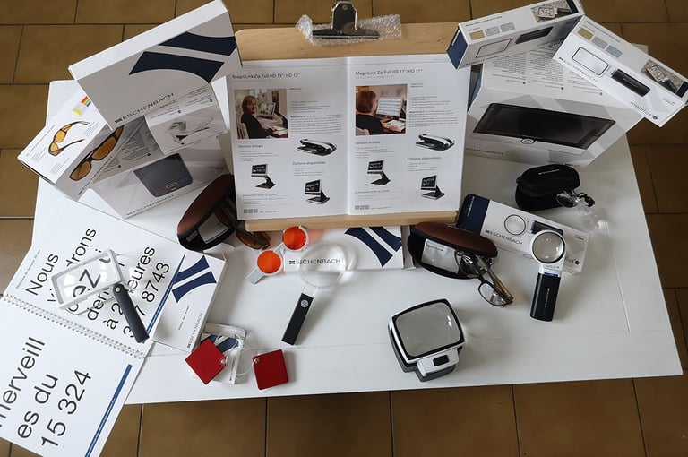 Pour les personnes atteintes de basse vision, notre Maison propose un service spécialisé. Loupes électroniques, systèmes grossissants, jumelles de lecture, et bien d'autres solutions : des aides visuelles innovantes, testées et personnalisées, pour faciliter vos tâches quotidiennes.